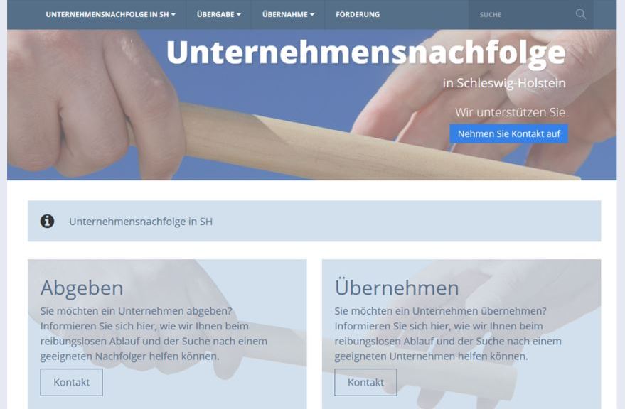 Unter www.unternehmensnachfolge-sh.de gibt es alle relevanten Informationen sowohl für Unternehmer, die einen Nachfolger suchen, als auch für diejenigen, die ein Unternehmen übernehmen möchten. Diesen Service bieten die schleswig-holsteinischen Handwerkskammern und Industrie- und Handelskammern gemeinsam mit den drei Förderinstituten des Landes (IB.SH, Mittelständische Beteiligungsgesellschaft (MBG) und Bürgschaftsbank) an.