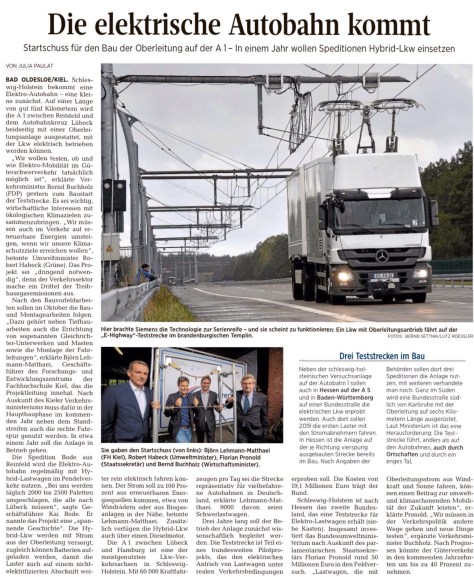 Wie Buchholz in der Autobahnmeisterei Bad Oldesloe vor rund 50 Gästen und Projektpartnern sagte, sei die Teststrecke Teil eines bundesweiten Pilotprojektes, das den elektrischen Antrieb von Lastwagen unter realen Verkehrsbedingungen erproben soll. Die Kosten von mehr als 19 Millionen Euro übernimmt der Bund. Ursprünglich war von 14 Millionen Euro ausgegangen worden. Da die Strecke jetzt in beiden Richtungen elektrifiziert werden solle, hätten sich die Kosten entsprechend erhöht, sagte Pronold.