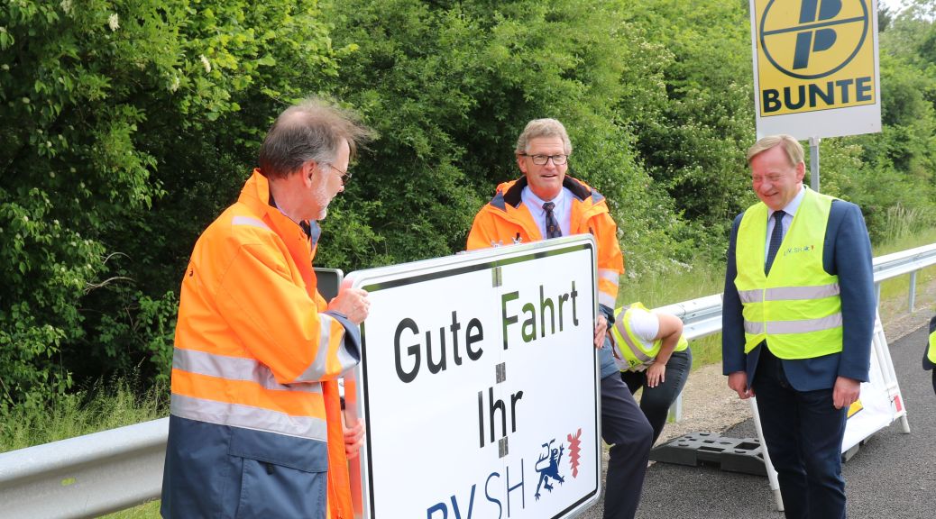 Weitere Etappe bei der Sanierung des Straßennetzes im echten Norden: Nach vier Jahren Bauzeit haben Verkehrsminister Dr. Bernd Buchholz und LBV.SH-Direktor Torsten Conradt heute in Sereetz im Kreis Ostholstein den sanierten Abschnitt der Autobahn A 1 zwischen Sereetz und Bad Schwartau wieder für den Verkehr freigegeben. „Das entlastet Tausende von Pendlern und unsere Logistik-Wirtschaft“, freute sich Buchholz zusammen mit dem örtlichen CDU-Bundestagsabgeordneten Ingo Gädichens und dankte sowohl dem LBV.SH als auch der Firma Bunte für die reibungslose Abwicklung der Sanierung.