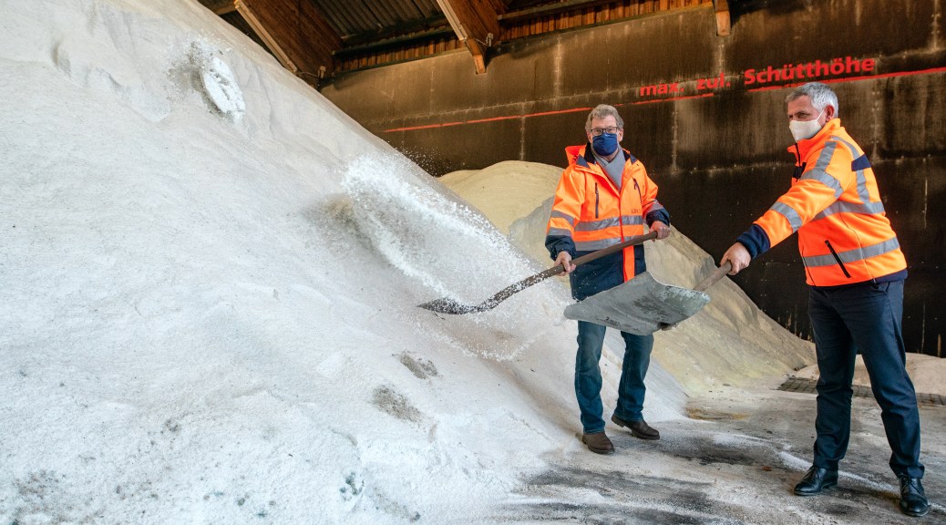 Die Einsatzpläne stehen, die Salzhallen sind gefüllt, die Räum- und Streufahrzeuge in den Straßenmeistereien sind startklar – der Winter kann kommen. Davon überzeugten sich heute in der Autobahn- und Straßenmeisterei Schleswig-Schuby Verkehrsminister Dr. Bernd Buchholz, der Chef des Landesbetriebes Straßenbau und Verkehr Schleswig-Holstein (LBV.SH), Torsten Conradt, sowie der Vorsitzende der Geschäftsführung der Autobahngesellschaft des Bundes, Stephan Krenz. „Unsere Meistereien haben aktuell gut 30.000 Tonnen Streumittel eingelagert, sind also gut vorbereitet – nun braucht es vor allem noch die Um- und Weitsicht aller Verkehrsteilnehmerinnen und Verkehrsteilnehmer, um unfallfrei durch den Winter zu kommen“, sagte Buchholz.