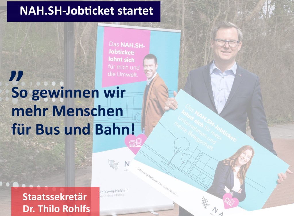 Nach dem Semesterticket, nun das Angebot für Arbeitnehmerinnen und Arbeitnehmer: Berufspendler können in Schleswig-Holstein ab Mai mit dem Jobticket günstiger zur Arbeit fahren. Macht der Arbeitgeber mit, sparen Mitarbeiter bei Monatskarten mindestens 25 Euro, wie der Nahverkehrsverbund Schleswig-Holstein (NAH.SH) heute mitteilte. Die Landesregierung hat nach den Worten von Verkehrs-Staatssekretär Thilo Rohlfs zwei Millionen Euro bereitgestellt, um das Ticket für den öffentlichen Nahverkehr zu realisieren.
