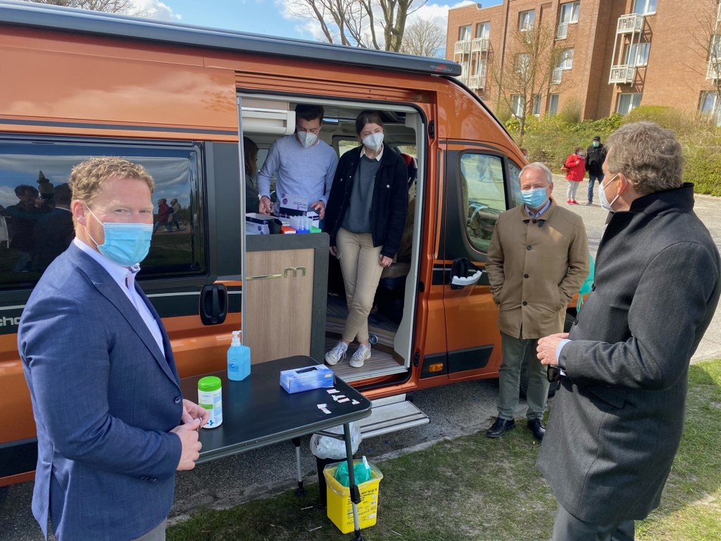 Eine Station des Rundgangs war unter anderem die Mobile Teststation des Krause-Labors. Als Sibbel, Borgmann und Buchholz in dem Zentrum auf dem Parkplatz neben der Stadthalle eintrafen, wurde gerade der 400. Test ausgewertet.