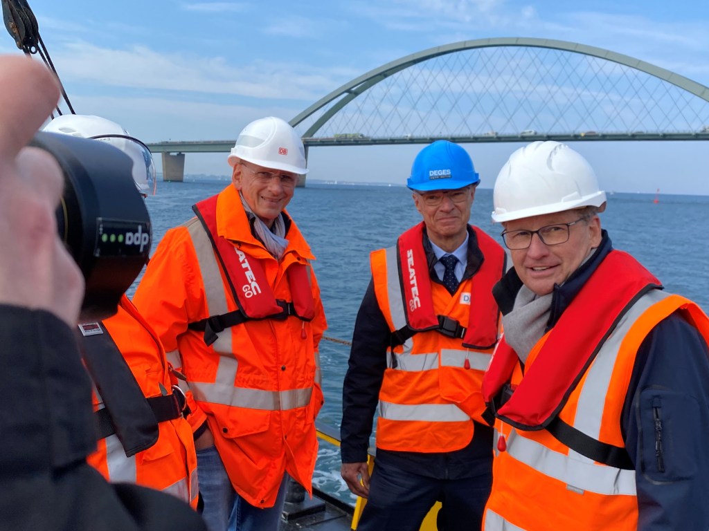 Auf Einladung der Deutschen Bahn und der Verkehrs-Infrastrukturgesellschaft DEGES hat sich Verkehrsminister Bernd Buchholz heute über die Probebohrungen für den geplanten Tunnel unter dem Fehmarnsund informiert. Begleitet wurde er bei seinem Besuch auf der Bohr-Plattform „Taucher Knothe“ von Bahn-Projektleiter Bernd Homfeldt (links im Bild) und DEGES-Bereichsleiter Bernd Rothe (Mitte). Seit Ende Mai wird in der Meerenge zwischen der Insel Fehmarn und dem Schleswig-Holsteinischen Festland von einer mobilen Hubinsel aus bis zu 63 Meter tief im Meeresgrund gebohrt. Ziel ist es nach Angaben von Buchholz, Aufschluss über den Baugrund für den geplanten Tunnel zu bekommen. Schon die ersten Bohrungen hätten gezeigt, dass die Beschaffenheit des Bodens an vielen Stellen schwierig sei, sagte er.