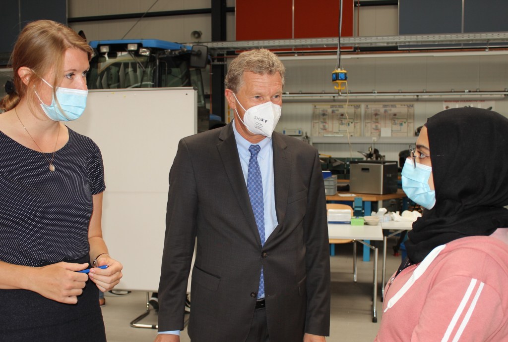Morgen stehen auch in Preetz und Itzehoe sowie am Mittwoch in Oldenburg in dieser Woche noch solche Termine an. „Damit können wir an allen 35 Berufsbildenden Schulen ein Impf-Angebot machen“, sagte heute früh der seit Januar für die Berufsschulen im Land zuständige Wirtschaftsminister Bernd Buchholz beim Besuch des Berufsbildungszentrums Bad Segeberg.