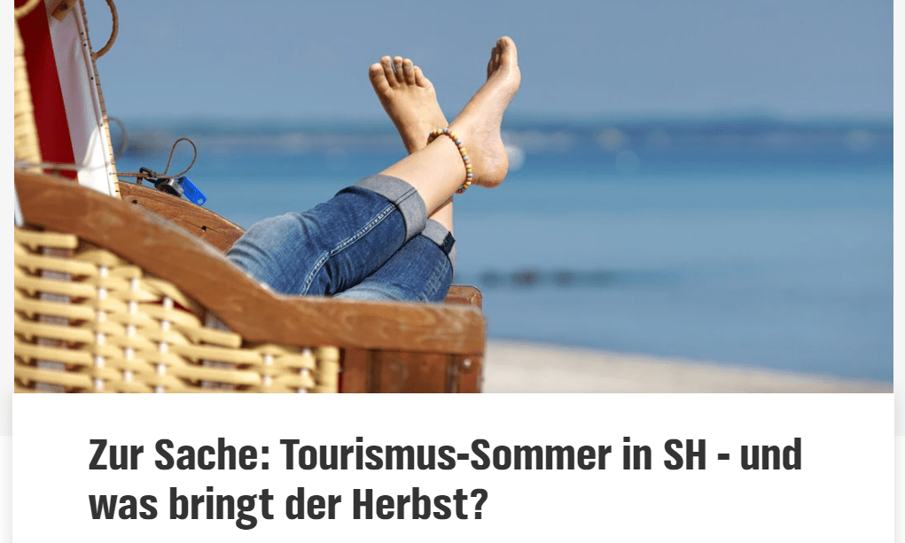 Am Donnerstag präsentierten Tourismusminister Buchholz und die Chefin unserer Tourismusagentur TA.SH, Bettina Bunge, die Halbjahresergebnisse 2021. Fazit: Obwohl das Beherbergungsgewerbe an nur 6 von 26 Wochen öffnen konnte, hat Schleswig-Holstein im ersten Halbjahr ein gutes Ergebnis erreicht: Mit 8,78 Millionen Übernachtungen – das ist ein Rückgang von 2,7 Prozent im Vergleich zum Vorjahreszeitraum – landet der echte Norden im Ranking der Bundesländer erstmals auf Rang 3.Heute Abend ab 18.05 Uhr wird die „Welle Nord“ des NDR noch einmal vertieft in das Thema einsteigen. Zu Gast bei Moderator Pascal Hillgruber werden nach NDR-Angaben sein: