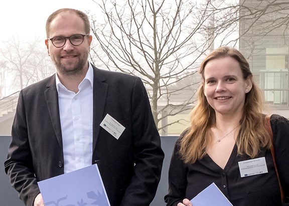 Einen Bescheid über zusammen rund 1,14 Millionen Euro nahmen Projektleiter Thomas Meier-Ahrens und Dr. Dagmar Bez für die „AWO Bildung und Arbeit gGmbH“ mit ihren Standorten Elmshorn, Pinneberg, Uetersen, Itzehoe und Plön entgegen. Kern ihres Projekts „Ich schaffe das!“ ist ein begleitendes, individuelles und regelmäßiges Einzelcoaching unter Einbeziehung der familiären und sozialen Strukturen.