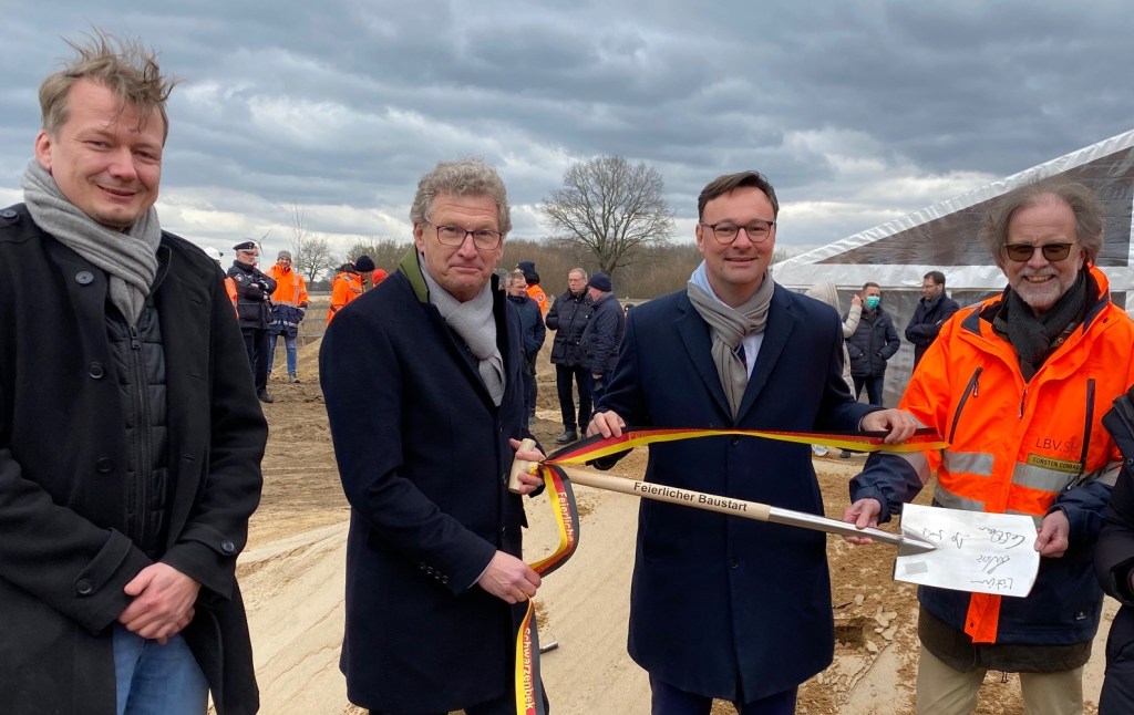 Lang ersehnter Meilenstein für das Herzogtum Lauenburg: Mit einem symbolischen Baustart haben heute der Parlamentarische Staatssekretär beim Bundesverkehrsministerium, Oliver Luksic, Verkehrsminister Dr. Bernd Buchholz, LBV.SH-Direktor Torsten Conradt und Bürgermeister Norbert Lütjens den Ausbau des zweiten Bauabschnittes der Ortsumgehung Schwarzenbek begonnen. „Ich bin sehr froh, dass wir heute mit dem Lückenschluss zwischen der B 404 und der K 17 beginnen. Die Menschen in Schwarzenbek haben über 20 Jahre auf diesen Tag gewartet“, sagte Buchholz.
