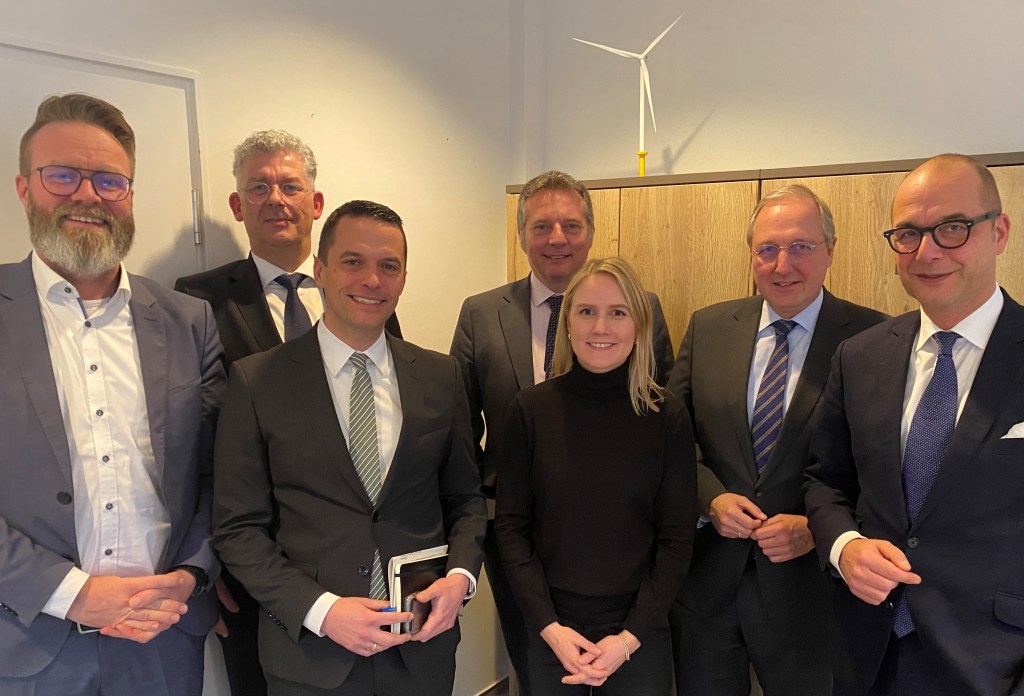 Dazu tauschten sich Minister Claus Ruhe Madsen (links), Staatssekretärin Julia Carstens und unser Abteilungsleiter Sebastian Wilckens (3.v.l.) mit KPMG-Vorstand Torsten Kaiser (2.v.l.), Michael Köhler, Ex-Wirtschaftsminister Jost de Jager (2.v.r.) sowie Olaf Buske (rechts) über Optimierungen beim Management von Fördermitteln im Bereich Tourismus und Mittelstand aus. Nach den Worten von Madsen waren sich beide Seiten einig, dass vor allem die Möglichkeiten der Digitalisierung zwischen Unternehmen und Landesbehörden oder landeseigenen Förderinstituten wie der IB.SH bei Weitem noch nicht ausgeschöpft seien. „Wir schauen einfach zu sehr von gestern auf heute – und viel zu wenig in die Zukunft“, sagte Madsen nach dem Treffen.