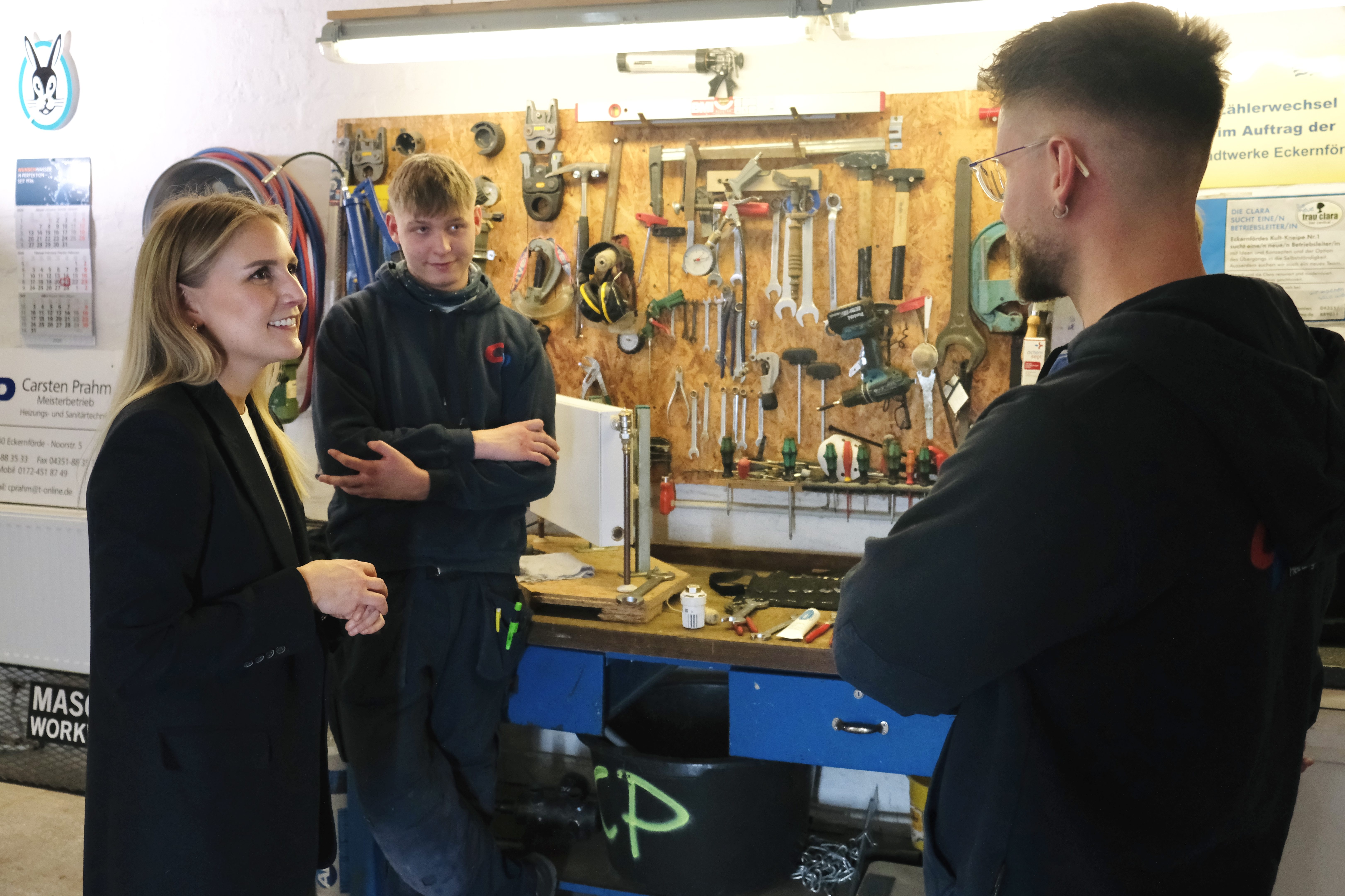 Mit Erfolg: Erste Betriebe – wie etwa der Eckernförder Heizungs- und Sanitärtechnik-Spezialist Carsten Prahm – freuen über neue Auszubildende. Prahm hatte 2024 eine Praktikantin und einen Praktikanten aufgenommen, die anschließend einen Ausbildungsvertrag unterschrieben haben. Und wie Carstens bei ihrem heutigen Besuch des Mittelstandsbetriebs sagte, hätten die Regierungsfraktionen für das laufende Jahr die Mittel für die Praktikumsprämie sogar auf 280.000 Euro erhöht. «Gleichzeitig wurden die Fördervoraussetzungen angepasst, so dass nun auch Schülerinnen und Schüler der beruflichen Schulen von der Prämie profitieren können», so die CDU-Politikerin.