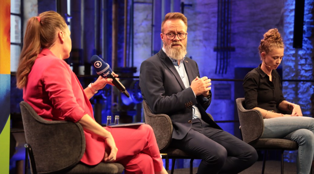 „Mitreden! Live vor Ort“, heißt ein noch recht neues Diskussionsformat der ARD-Tagesschau, das heute Abend in Lübeck ein Stück Neuland betrat: Anstelle eines reinen Youtube-Streams mit Chat saßen rund 120 Zuschauerinnen und Zuschauer live in der Gollan-Kulturwerft. Im Mittelpunkt der Diskussion mit Arbeitsminister Madsen, dem Regensburger Wirtschaftswissenschaftler Enzo Weber und der Sozial-Akivistin Helena Steinhaus (Verein «Sanktionsfrei»): Das Bürgergeld vor dem Hintergrund steigender Preise, einer schwächelnden Wirtschaft und politischer Pläne für härtere Sanktionen.