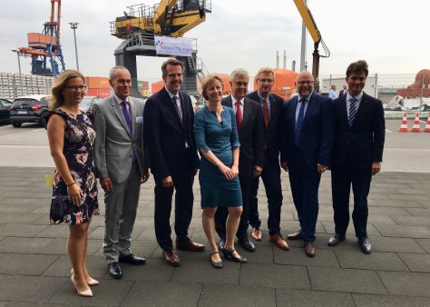 Gastgeber Schnabel (3.v.l.) mit Katja Freitag von German LNG (Mitte) und den Ehrengästen