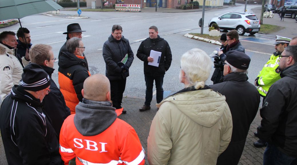 Verkehrsminister Reinhard Meyer hat sich heute gemeinsam mit dem zuständigen Landesbetrieb Straßenbau und Verkehr Schleswig-Holstein (LBV-SH), der Polizei und den zuständigen Bürgermeistern drei zum Teil seit Jahren umstritttene Kreuzungen angeschaut.