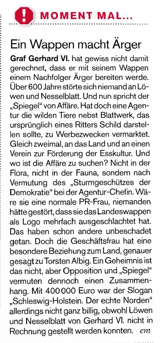 Die Planungen für ein Teilstück der A 20 im Kreis Steinburg verzögern sich um zwei Jahre, nachdem dort ein verwaister Seeadlerhorst entdeckt wurde. Das nahm die Opposition im Landtag heute zum Anlass, Verkehrsminister Meyer zu attakieren. Der Minister machte in seiner rede einmal mehr klar, dass der Adlerhorst selbst Verzögerungen von sechs bis acht Monaten bewirke. Wegen eines Dominoeffekts würden daraus zwei Jahre, weil Nachkartierungen und eine neue Verkehrsprognose erforderlich seien.