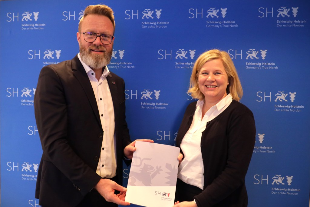 Startup.SH-Chefin Anke Rasmus nahm vergangenen Donnerstag von Minister Madsen den Förderbescheid entgegen.