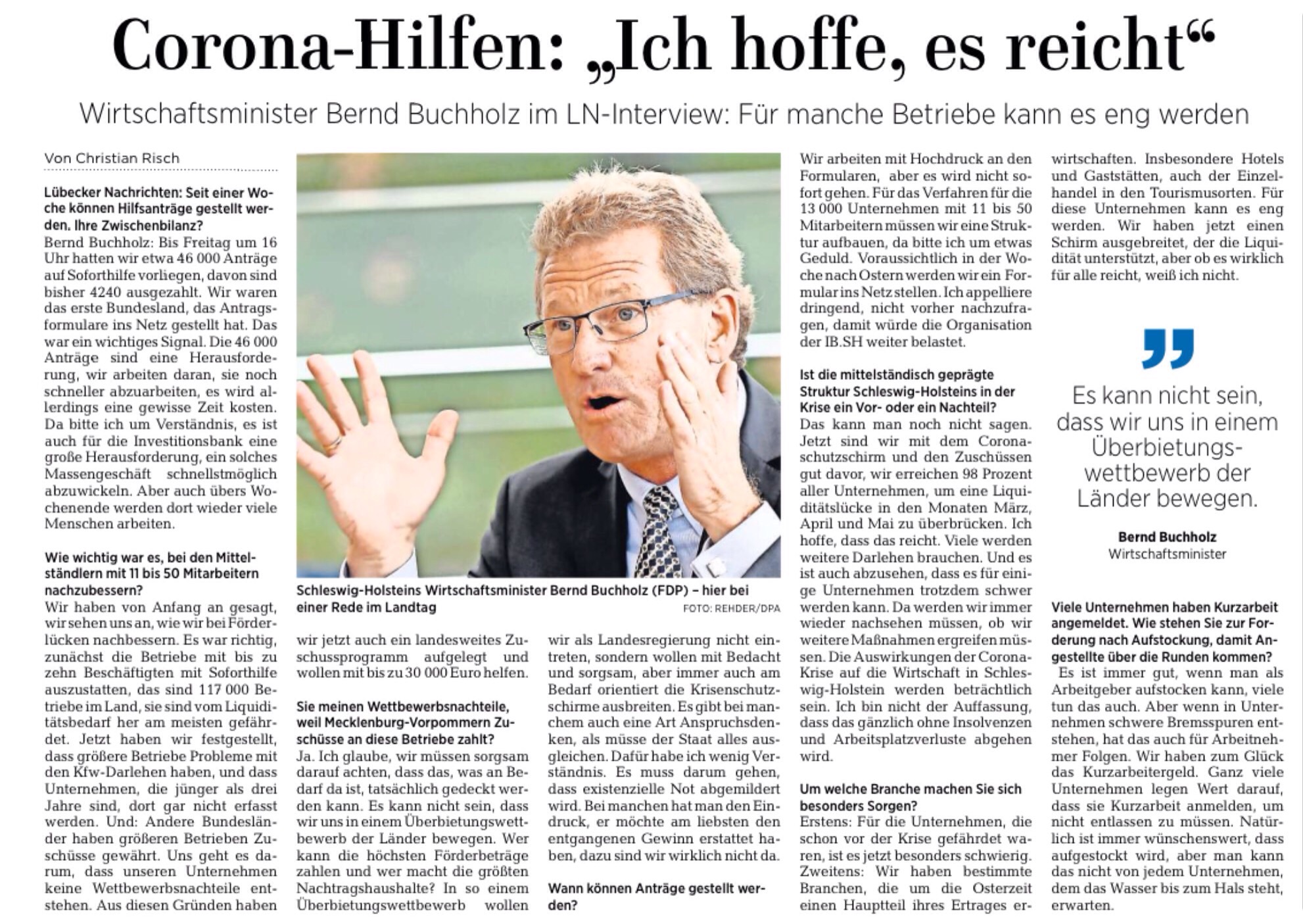 Buchholz und seine Kabinettskollegen sehen sich durch die IfW-Untersuchung in ihrem Kurs bestätigt, durch eine im Bundesvergleich stärkere Fokussierung auf die Tourismusbranche der besonderen Wirtschaftsstruktur im Land Rechnung zu tragen. „Denn insbesondere der Wegfall des Ostergeschäfts trifft diesen Wirtschaftszweig hart und wird kaum nachzuholen sein», so der FDP-Politiker.