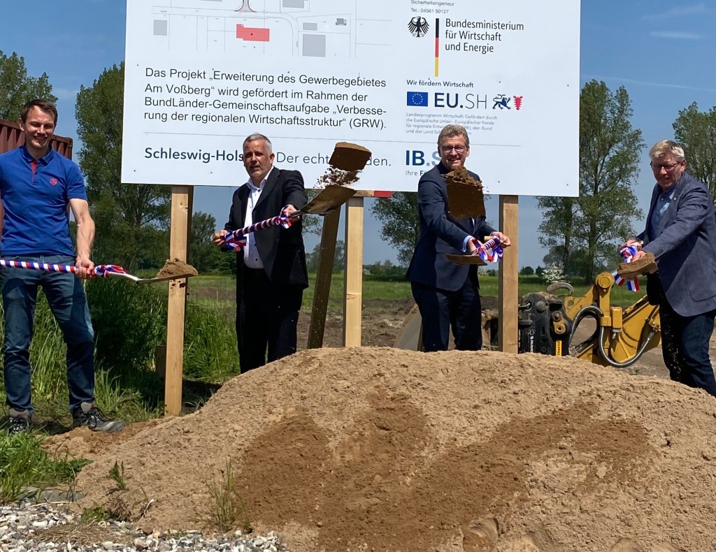Nun aber – ein halbes Jahr nach dem höchstrichterlich bestätigten Baurecht für das von den Dänen finanzierte Milliardenprojekt – ändert sich nach und nach auch auf deutscher Seite die Haltung: So zeigt der Bau des Tunnels unter anderem erste Spuren im Wirtschaftsraum Ostholstein. Angesichts des wachsenden Bedarfs an Gewerbeflächen entlang der künftigen Trasse zwischen Deutschland und Dänemark erweitert die Stadt Oldenburg ihr Gewerbegebiet „Am Voßberg“ um 4,5 auf fast 37 Hektar. Für das 2,2 Millionen Euro teure Vorhaben überbrachte Wirtschaftsminister Dr. Bernd Buchholz am Freitag an Bürgermeister Jörg Saba einen Förderbescheid des Landes in Höhe von 1,3 Millionen Euro und setzte zugleich den ersten Spatenstich. „Mit dieser Investition nutzen Sie Ihre einmalige große Chance auf Ansiedlungen und Wachstum, die ihnen dieser nordeuropäische Brückenschlag bietet“, sagte Buchholz.